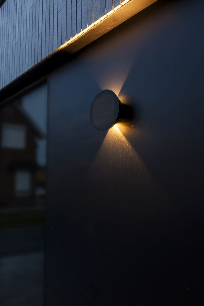 The BELKA is a solar hybrid wall light that offers versatile up and down lighting with an adjustable beam. Featuring a frontal solar panel, it can operate on both solar and electric energy, providing flexible and sustainable lighting solutions for any outdoor area.