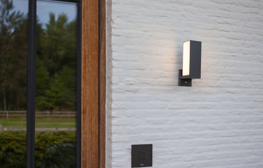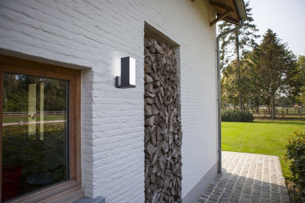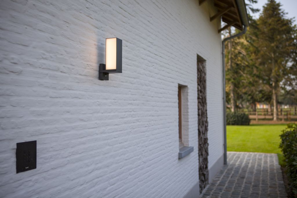 Rectangular, modern & versatile outdoor wall light with integrated connected LED module suitable for vertical and horizontal mounting. The light head with double diffuser can be rotated over 90°. Also available with motion sensor.
