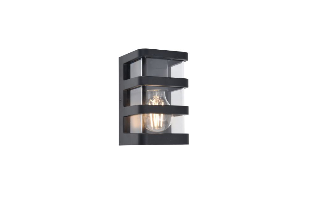 The DALTON wall light, finished in black with a clear diffusor, embodies an industrial style. Designed to house an E27 bulb, this fixture provides robust illumination while adding a touch of rugged charm to any outdoor space.