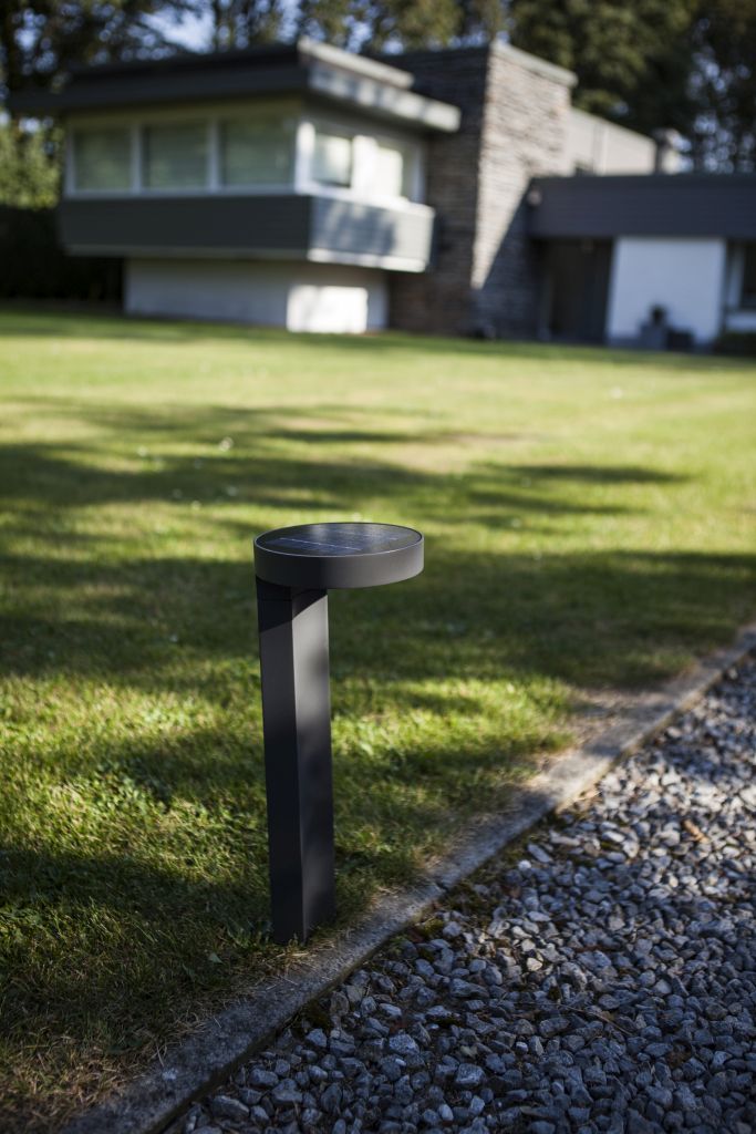 Ingenious designed solar bollard with a perfectly integrated solar panel. Ready to capture the full sunlight. The moveable head will orientate the light beam to the desired spot. Mountable with screws or with included ground spike.