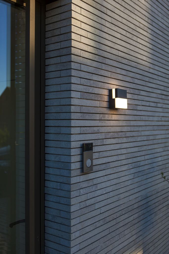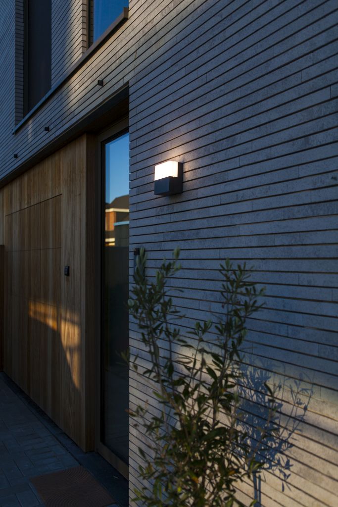 The DOMINO outdoor LED wall light in dark grey features a modern square form with multiple installation and orientation options. It combines a frontal diffuser with up lighting, delivering both functional illumination and a refined appearance for exterior spaces.