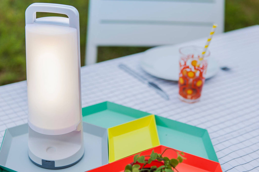 In the 'open' position, this portable solar lamp will accumulate sufficient solar energy during the daytime or alternatively be charged through a built-in USB connector and included cable. In his closed position it will give an inviting light when it is dark. Comes with 3 step dimmer.