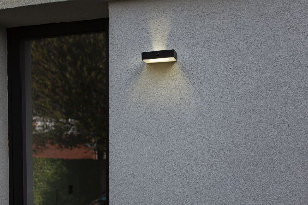 Solar connected wall light FADI has a sleek and modern look. The wall lamp has a convenient sensor which will automatically turn on when it gets dark. Can be used as fence lighting or facade lighting. Thanks to the connected module you can light your outdoor space completely to your personal taste via the free app. During the day the lamp will charge itself by means of the solar panel, so that in the evening and at night you can enjoy the cozy warm white light in your garden.