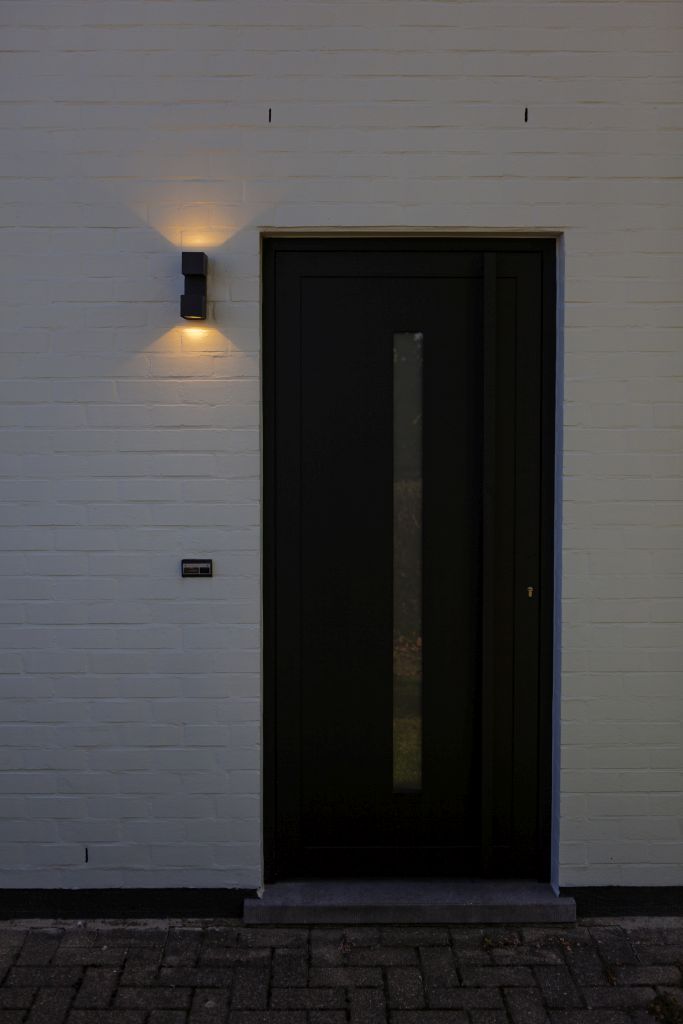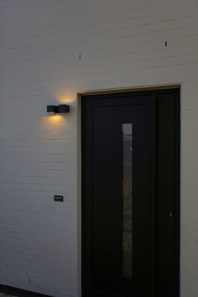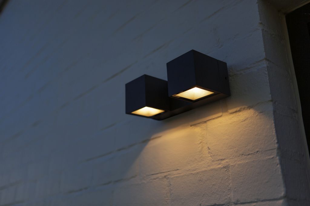The FARI outdoor LED wall light in dark grey features two movable light heads for flexible illumination and allows horizontal or vertical installation, offering practical adaptability for different outdoor settings.