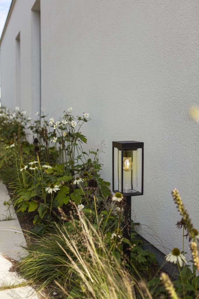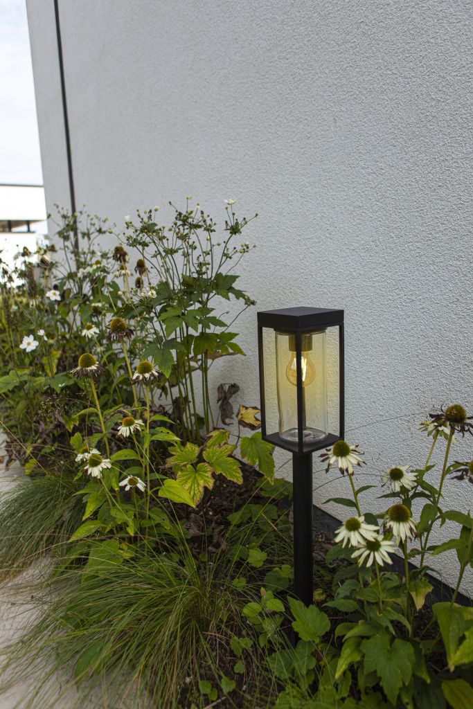 FLAIR bollard LED Solar light is perfectly fit for lighting of gardenpaths or the driveway of a cottage style house. Full installation freedom, no cables needed. Turns on automatically when it gets dark in the evening. The filament low voltage bulb is included.