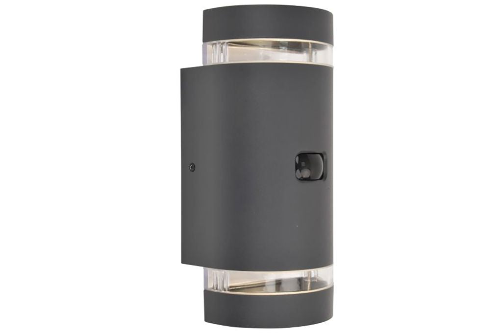Evergreen FOCUS design, Up & Down Outdoor LED wall light with movement detection. The black and compact PIR sensor is perfectly integrated in the housing. Time and Twilight setting manually adjustable.