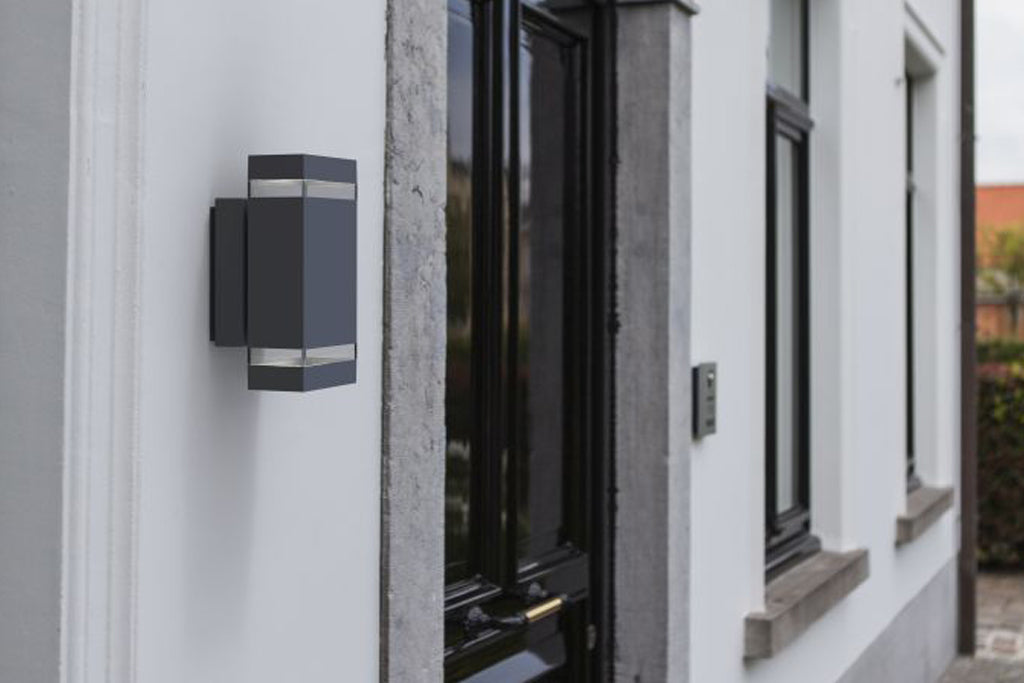 Square execution in dark grey die-cast aluminum, with an integrated LED engine with Up & Down light.