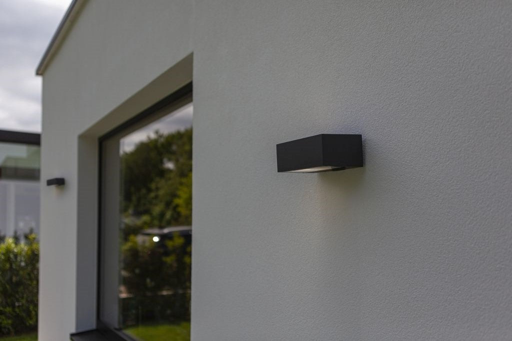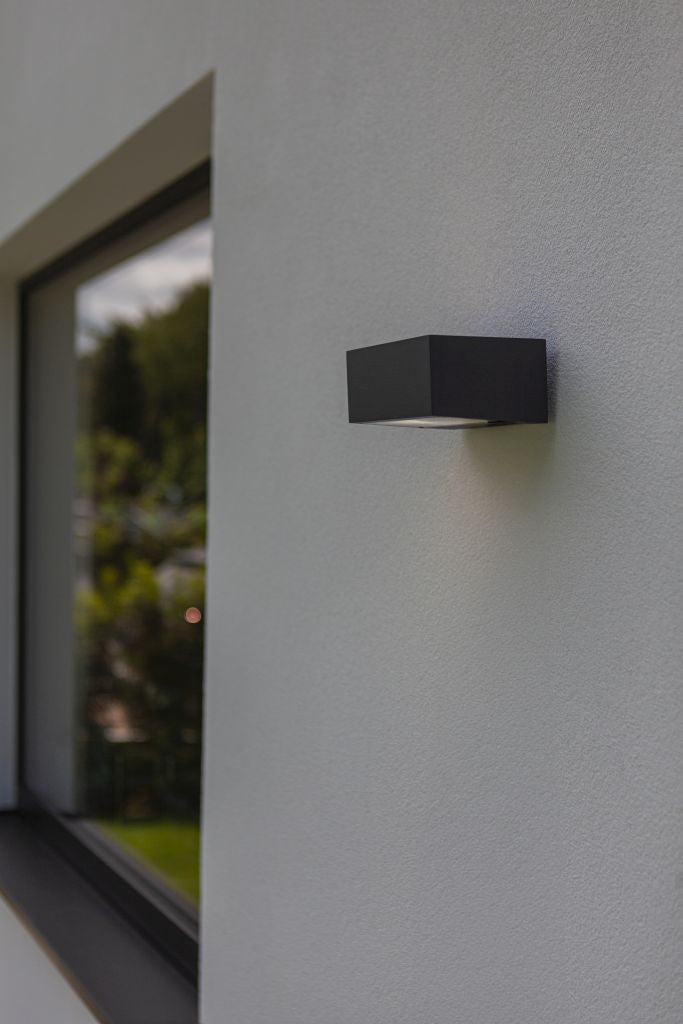 The modern-style GEMINI outdoor wall light is constructed from dark grey die cast aluminum, with a frosted glass diffuser. Designed for use with retrofit E27 lamps, such as G45 or T45, so you can choose the desired light effect you want to achieve on your wall. The compact width of 170mm means the GEMINI is convenient to install on any wall around the house.