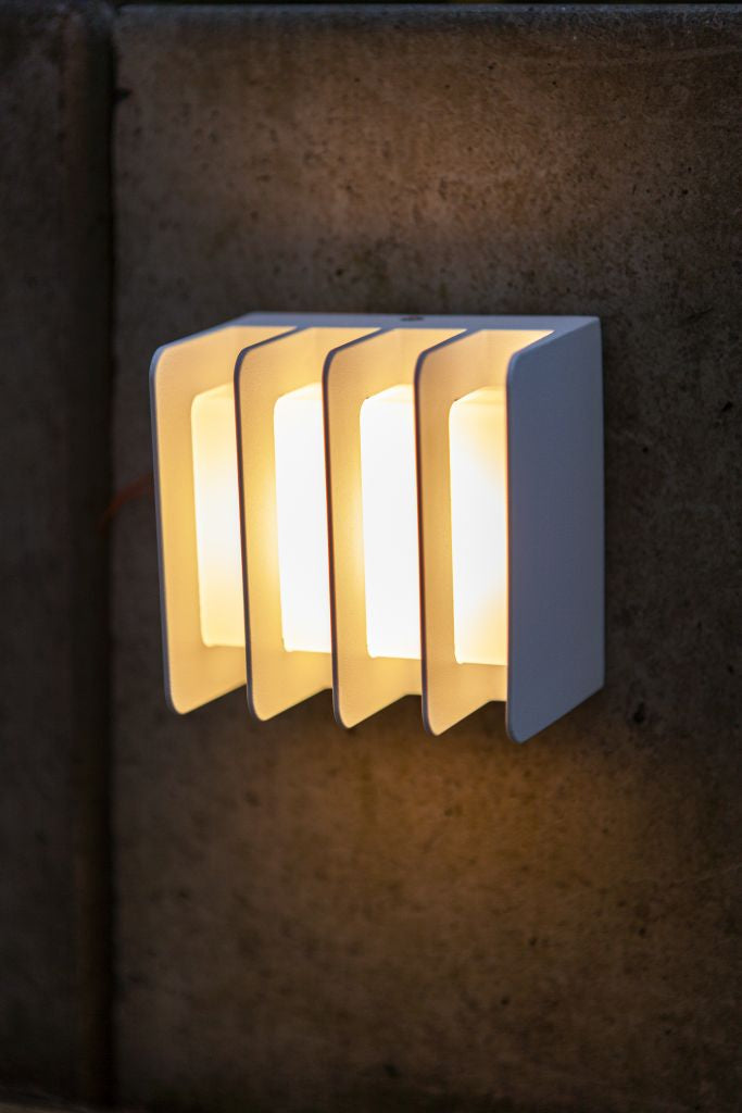 Compact LED Outdoor wall light with grill design. Can be used in horizontal and vertical position. Ideal to create lovely patterns on garden walls in double or triple installation. Comes in the actual colour: matt white.