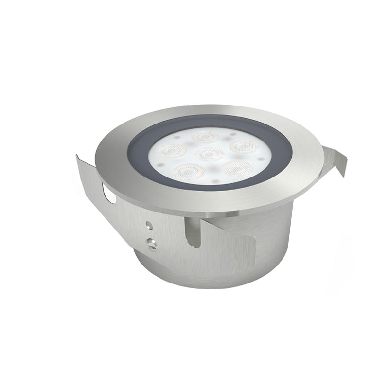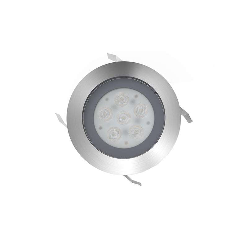 Midsize surface fixture complete with integral CREE XPE(6pcs LED) package and 10/40 degree bean options .Tempered glass, marine Grade 316 Stainless Steel construction rated tolP68.Hidden & embedded design installation .No mechanical joints to light source ensures robust protection against water ingress .Product runs cool meeting all touch temperature requirements. Inline 350mA driver options include switched, mains, 1-10V and DALI dimmable solutions。 6W wattage with 600 luminous. Product size is 96x47mm.