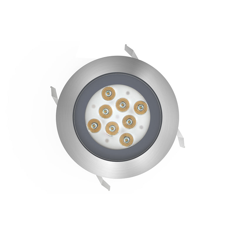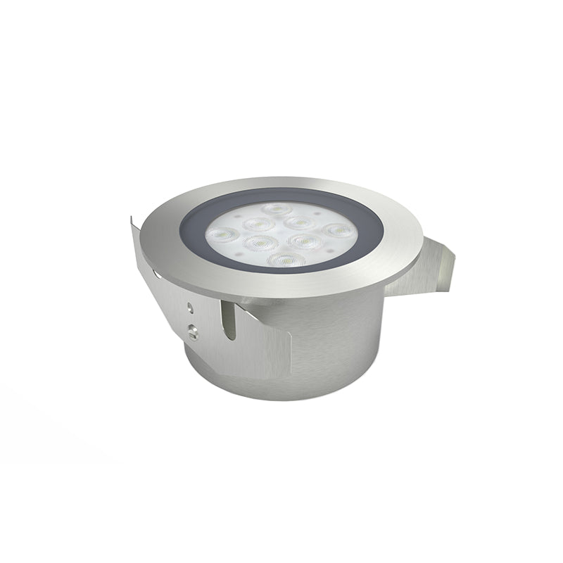 Midsize surface fixture complete with integral CREE XPE LED(8pcs LED) package and 10/40 degree beam options. Tempered glass,marine grade 316 Stainless Steel construction rated to IP68. Hidden&embedded design installation. No mechanical joints to light source ensures robust protection against water ingress. Product runs cool meeting all touch temperature requirements. Inline 350mA driver options include switched, mains, 1-10V and DALI dimmable solutions. 8W wattage with 800 luminous. The product can be used buried or underwater.