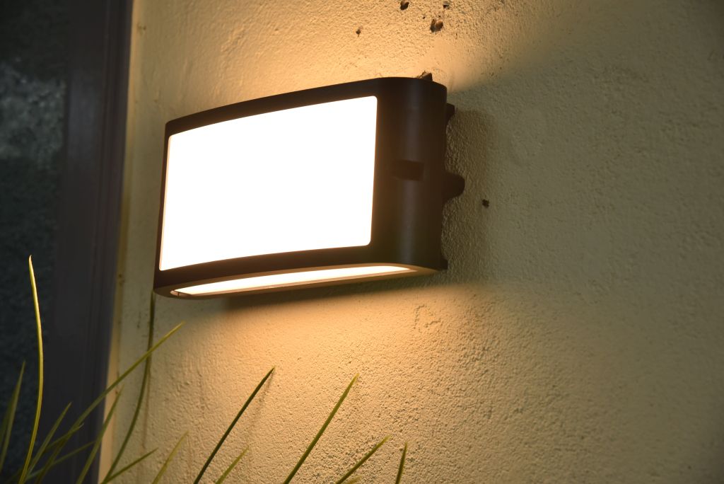The KABAN outdoor LED wall light, finished in sleek black, features a versatile lighting design that emits light upwards, downwards, and forwards. This multidirectional beam pattern enhances the architectural features of any space while providing ample illumination for outdoor areas.