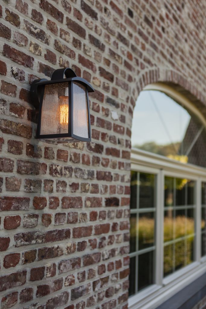 Give your outdoor spaces an intimate look and feel with this medium size black wall light. While using the newest 'filament' retrofit LED bulbs behind the water glass diffuser, you will create a charming atmosphere.