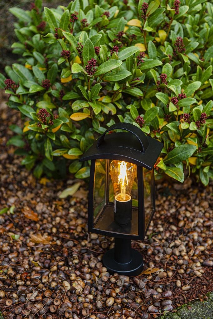 Give your outdoor spaces an intimate look and feel with this pedestal. While using the newest 'filament' retrofit LED bulbs behind the clear glass diffuser, you will create a charming atmosphere.