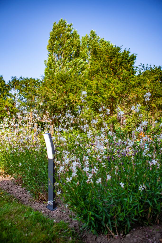 The KIRA outdoor connected LED bollard featuring a curved and frameless diffusor. Distributes a homogenous white light to illuminate walls, pathways and other open spaces around your home.