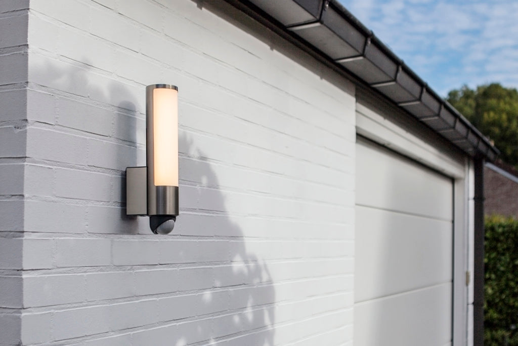 Tubular stainless steel wall light in the InMotion range contains a horizontal and vertically adjustable motion sensor. Thanks to the integrated sensor the light will automatically illuminate as soon as you get closer.