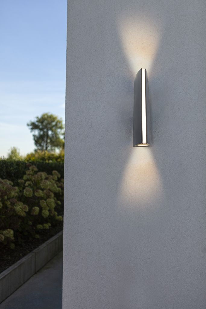 The simple yet striking LEO wall light. Featuring a strong up & down light beam and an opal vertical light strip in the front. The visual impact of this stunning modern LED fitting is especially impactful when multiple lights are installed in arrangement.