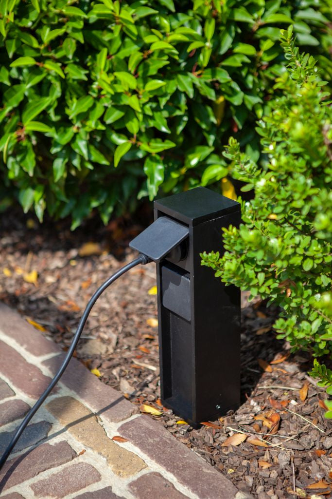 This dark grey outdoor power supply socket with side earth, in die cast aluminium, is very easy to install and provide your entire garden with energy, so you can enjoy your outdoor space. Total power supply up to 3500W.