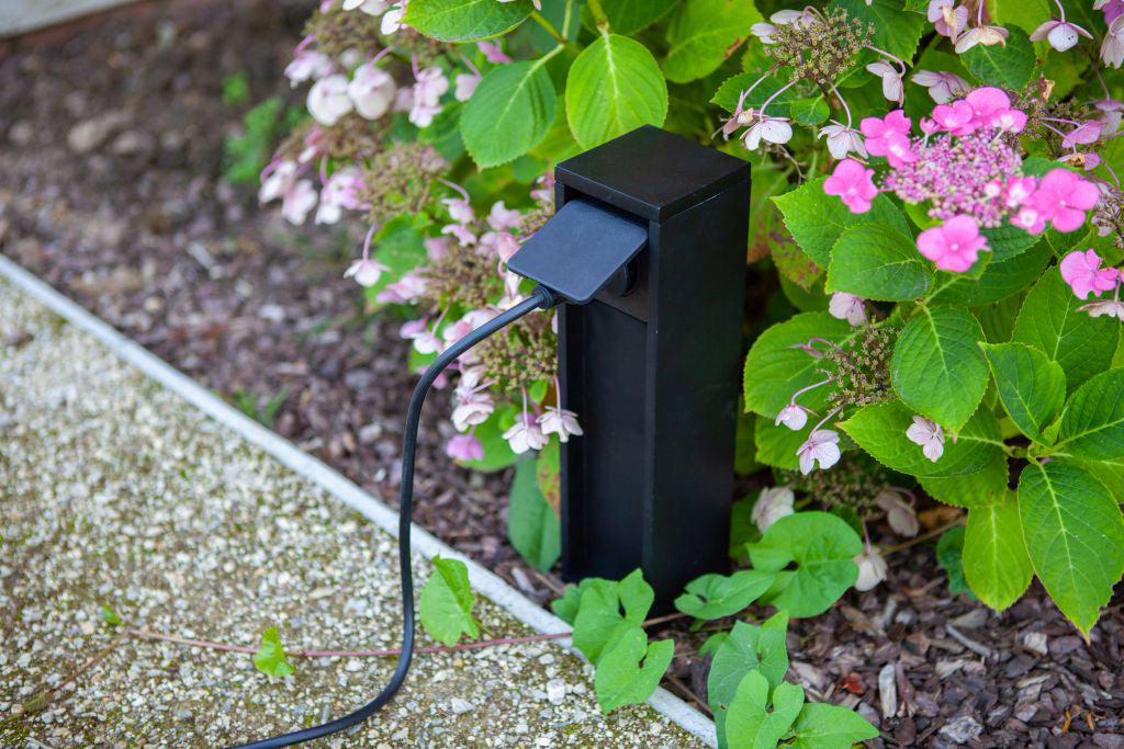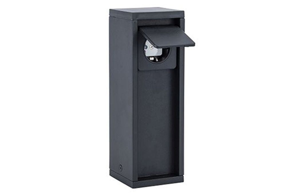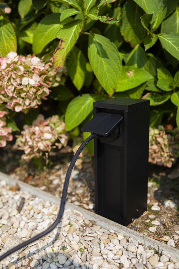 This Matt black small outdoor bollard with power supply socket in die cast aluminium is very easy to install and provides your entire garden with energy. You will be able to enjoy your outdoor space. Comes with one side earth socket and has a total power supply up to 3500W.