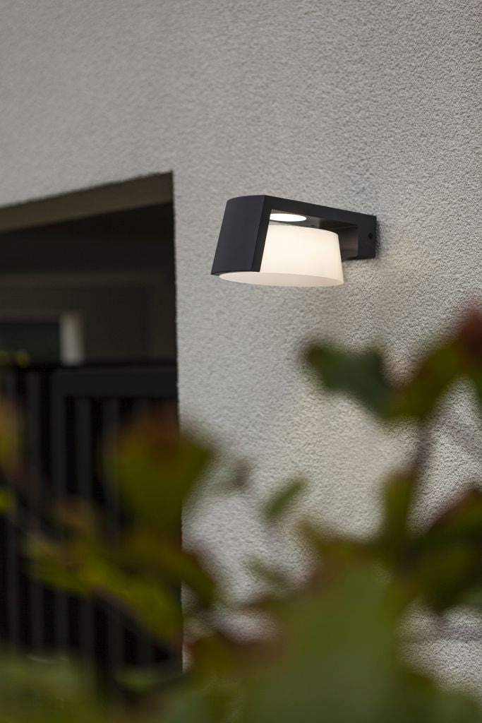 Elegant LED Outdoor wall light with downlight function. Your frontdoor area or garden wall will light up completely thanks to the powerful light beam. The cylindric white synthetic diffusor creates a nice homogenous warm white light.