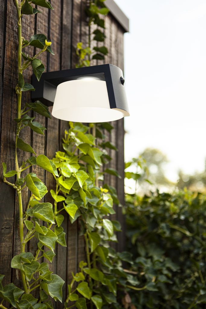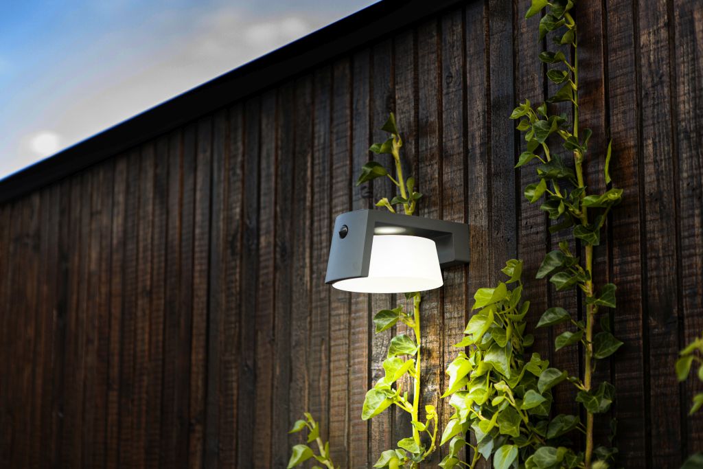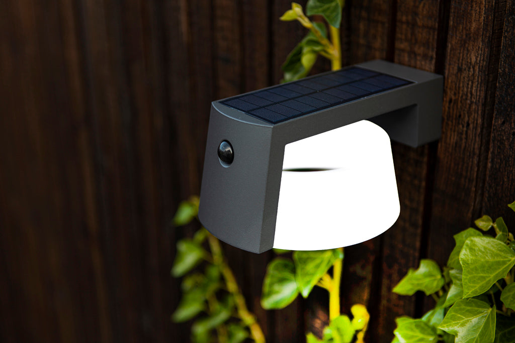 Elegant LED Outdoor Solar wall light with downlight function. Your frontdoor area or garden wall will light up completely thanks to the powerfull light beam. The cylindric white synthetic diffusor creates a nice homogenous cool white light. Integrated switch with AUTO (with motion sensor) – DIM – ON (permament light) – OFF function.