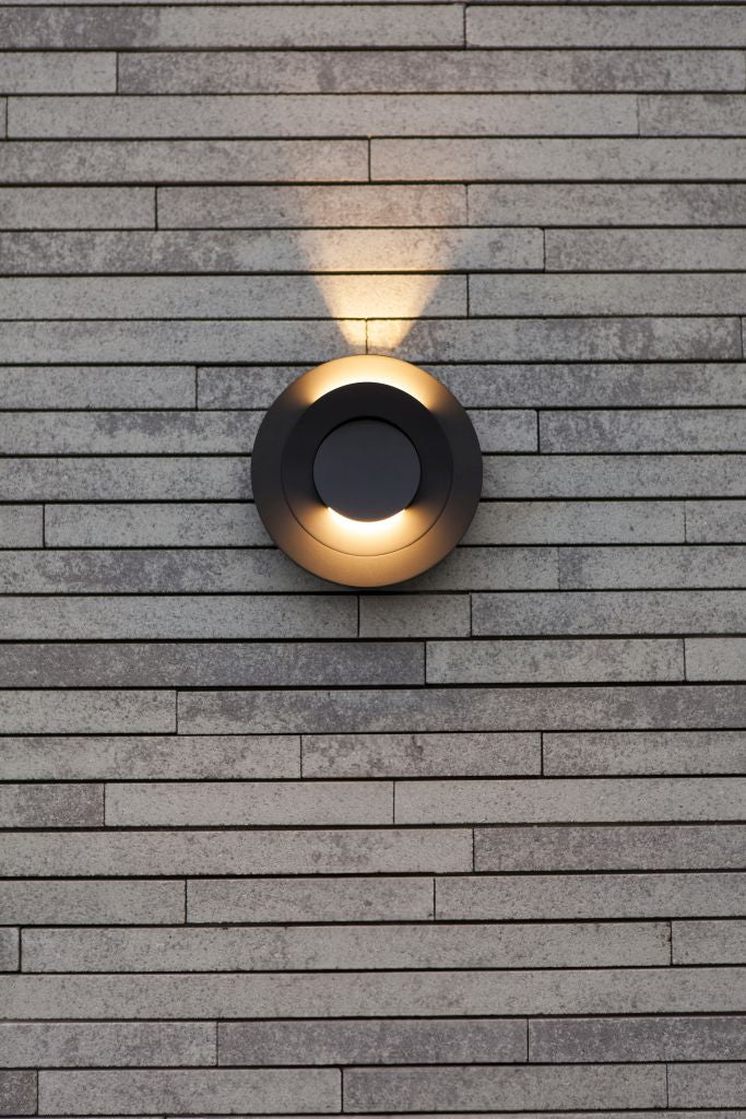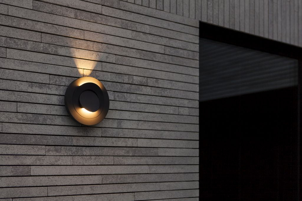 The MOOV Outdoor LED wall light features a robust dark grey aluminum body with two adjustable heads plus one fixed light beam. This configuration allows for targeted lighting flexibility, making it ideal for illuminating specific areas of your outdoor space effectively.