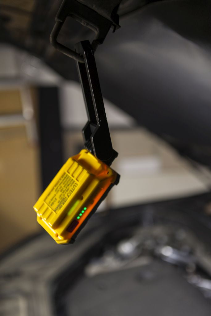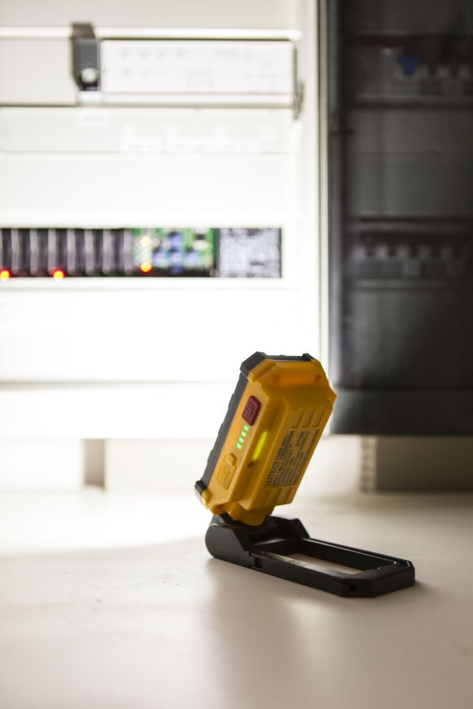 The PENI outdoor LED portable work light, in a durable yellow and black finish, offers practical lighting at 4000K. It features USB-C charging for convenience and can be easily positioned using its magnetic mounting or hook for hanging, making it ideal for a variety of work or emergency situations.
