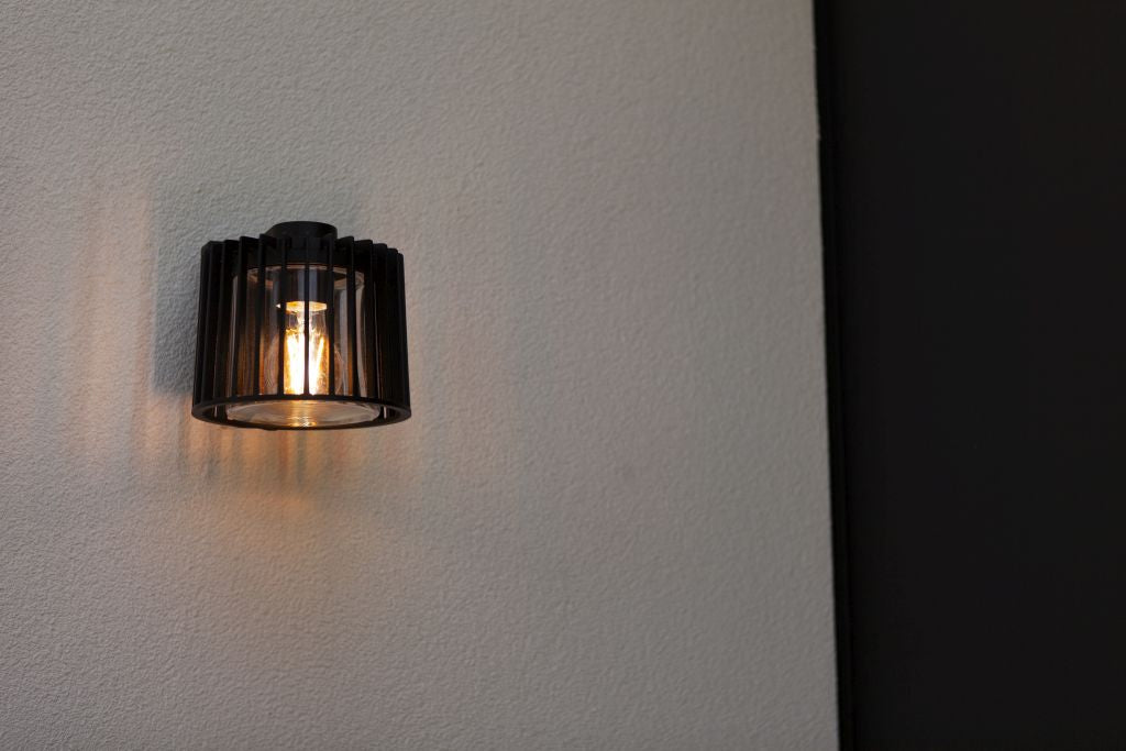 The SHYNE family of lighting fixtures, all in a modern black finish, features E27 sockets for versatility. This collection includes a wall light and a ceiling light, offering a coordinated and stylish lighting solution for your outdoor space.