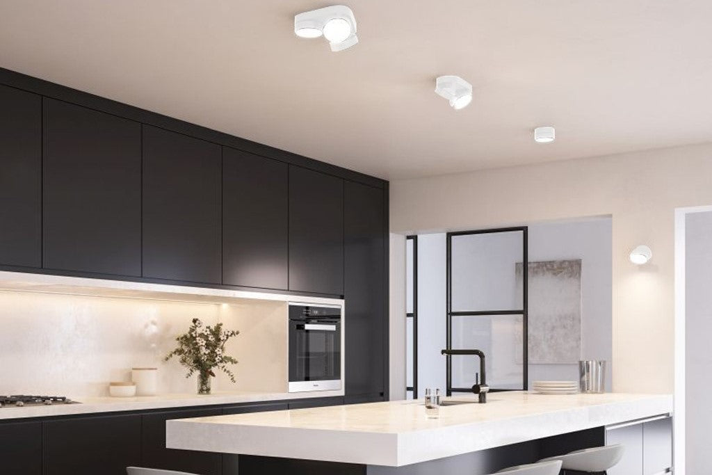 The modern white STANOS offers varied and cleverly controlled light. The head can rotate and be adjusted from up to down, this option enables optimal lighting diffusion. You can choose different shades of white, so that the right light is available for every moment of the day and every mood. The spotlight is controlled with the compatible App via your own smartphone or tablet. Operation without internet access is also possible with the corresponding remote control available as an accessory.