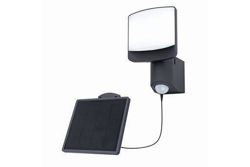 This compact wall light offers a complete security light installation without any wiring to the electricity network. The separate adjustable solar panel with its 5 m cable can be positioned on the optimum spot to capture sunlight all day long. Comes with an adjustable (time & distance) PIR motion sensor. The moveable spot head gives a very powerful lightbeam of 500 lumen.